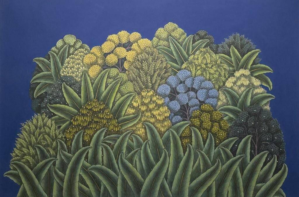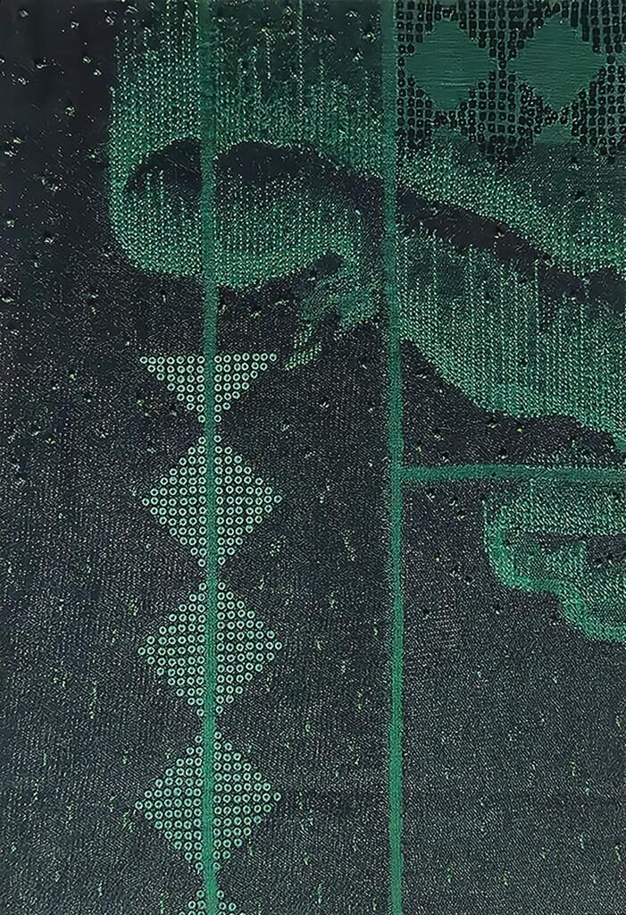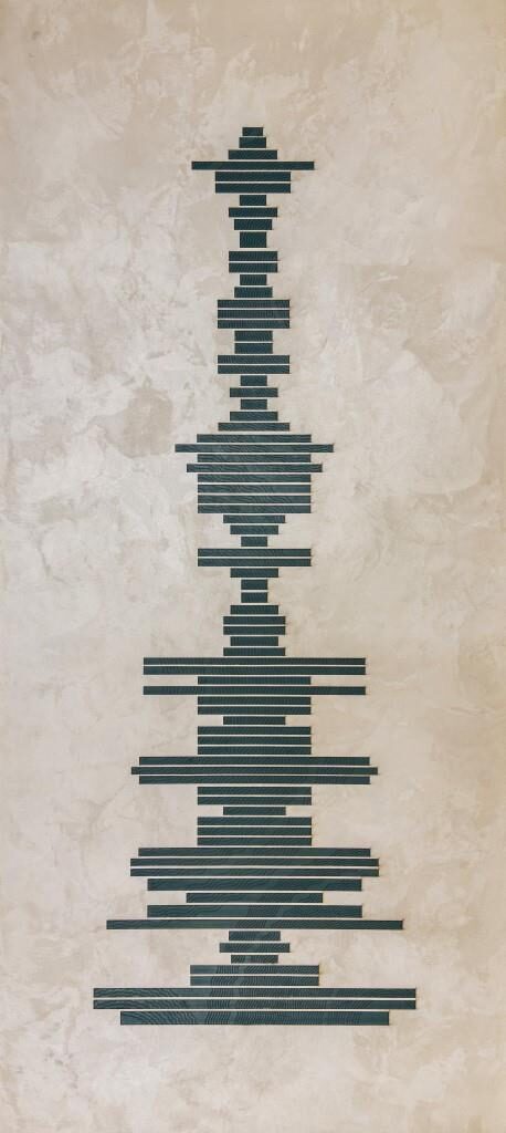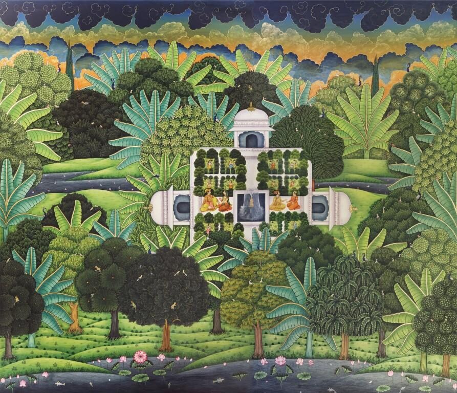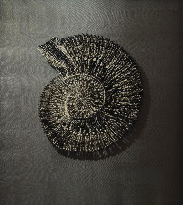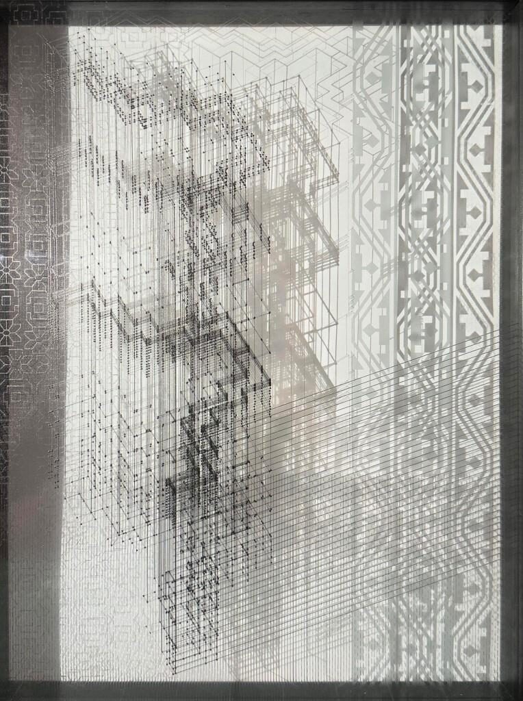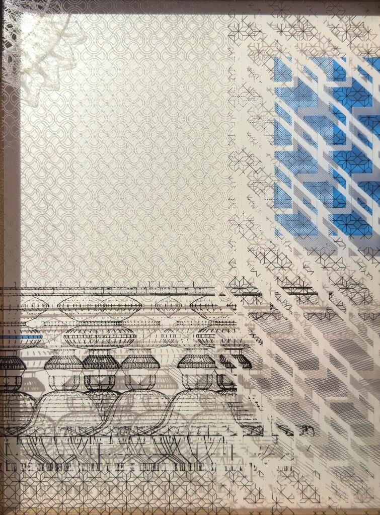 Carved wooden and stone temple friezes appear as studies of form and history, alongside modern sculptural temple designs and gateways that explore ideas of threshold, structure, and light. In the embroidered works, we see modules suggesting constructional intent whilst subtle variations and erosions produce organic fluidity while depicting living organisms of the sea and land. The drifting clouds embody the movement of light and shadow, while studies of traditional columns and bone inlay in lime plaster speak of enduring craft lineages.